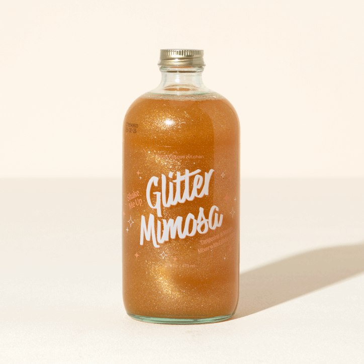 This vibrant mixer blends juicy tangerine and mango with FDA-approved edible glitter for a touch of sparkle in every sip. It’s highly concentrated—just add ½ to 1 ounce to a glass of sparkling wine, seltzer, sparkling juice, or even lemon-lime soda. It’s also delicious splashed over ice with a dash of rum. Cheers!