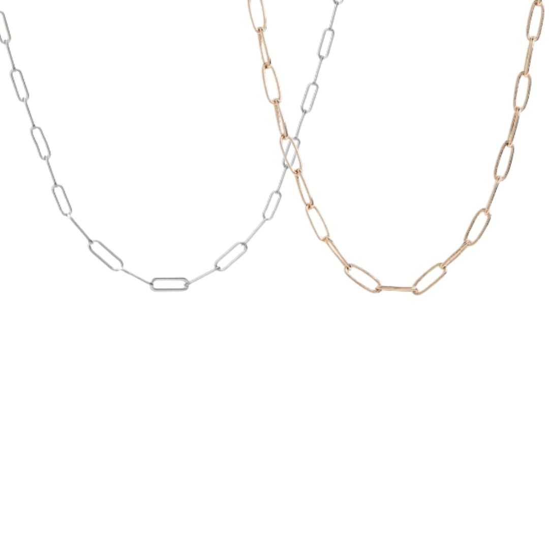 The Hazel is a timeless paperclip-style necklace, perfect for layering or wearing solo. Delicately crafted with sleek, elongated links, this necklace radiates understated elegance. Measuring 15 inches with a 2-inch extender, it offers a customizable fit to complement any neckline. Lightweight and versatile, Hazel is your go-to piece for a minimalist yet chic look.