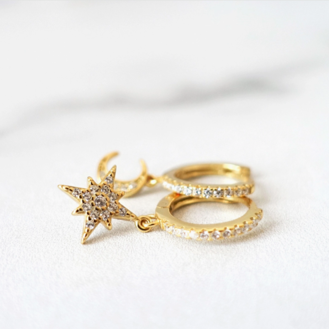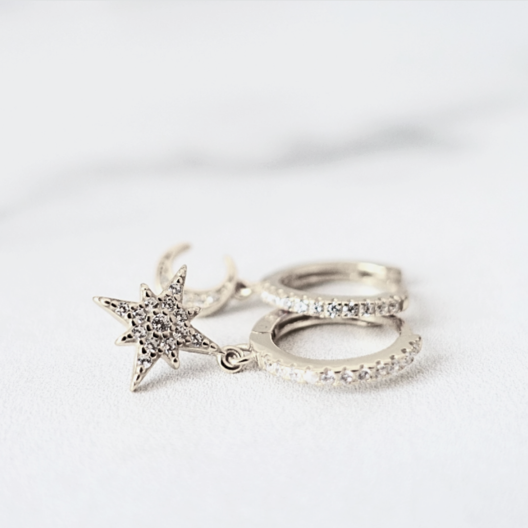 Not everything needs to match—and these earrings prove it. One side flashes a moon, the other a star—both iced with cubic zirconia and dripping in attitude. It’s celestial, but not sweet. Stack them, clash them, break a few rules. The night sky never played it safe—why should you?