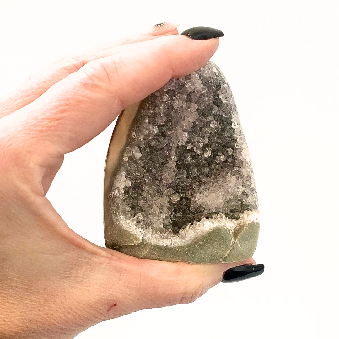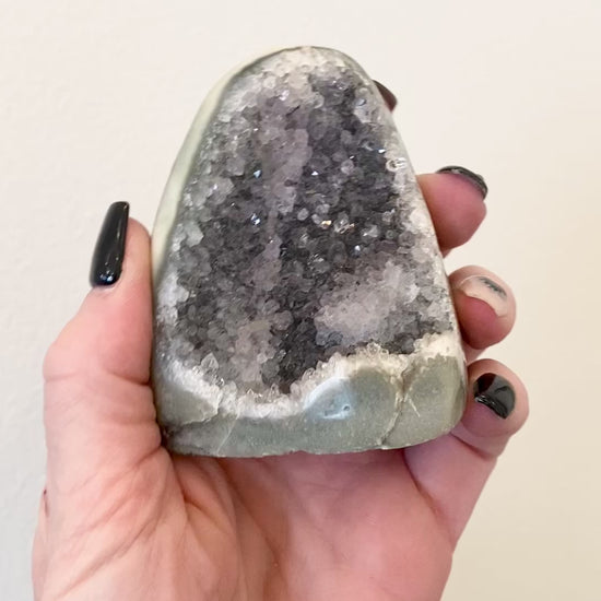Each specimen is completely one of a kind, with natural variations in tone, crystal size, and sparkle. Style it on a shelf, console, or tabletop as a quiet focal point that adds weight, warmth, and a little magic to any space.