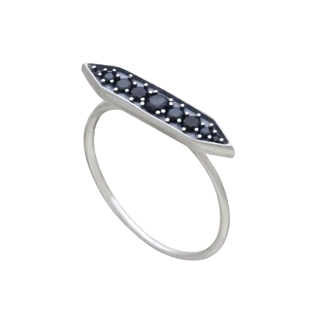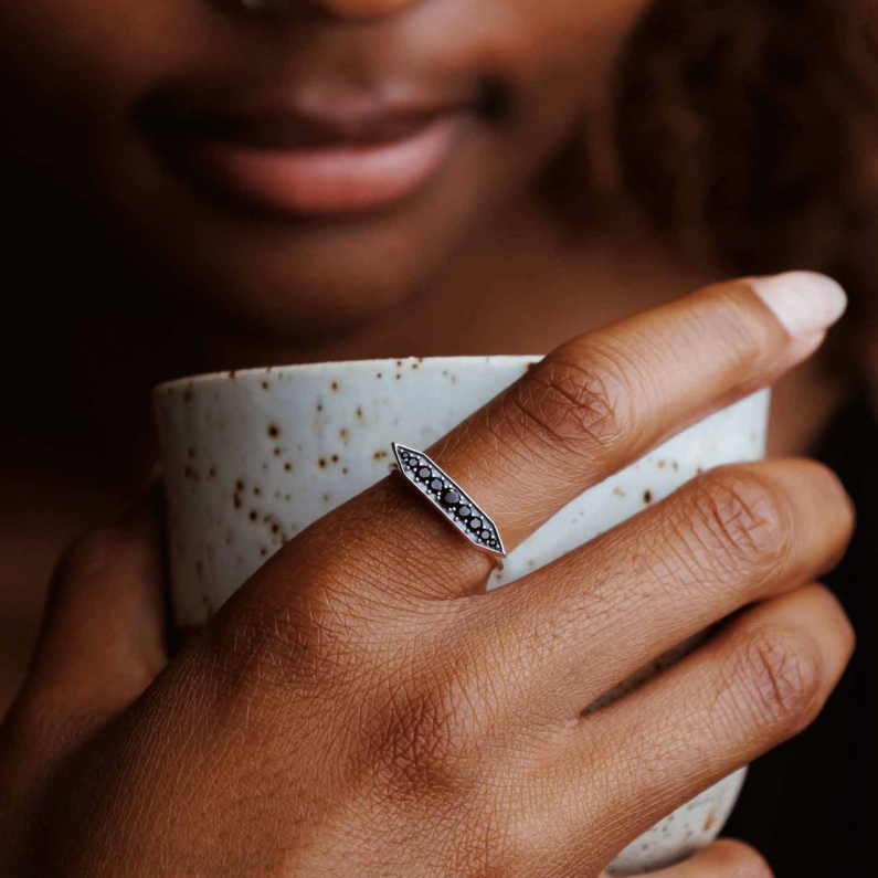The Raven Ring doesn’t whisper—she commands. Tapered black crystals slash across a bar of recycled sterling silver, creating a sleek, badass silhouette with just the right amount of danger. Stack one for edge. Stack three for chaos. Either way, it’s pure magic.