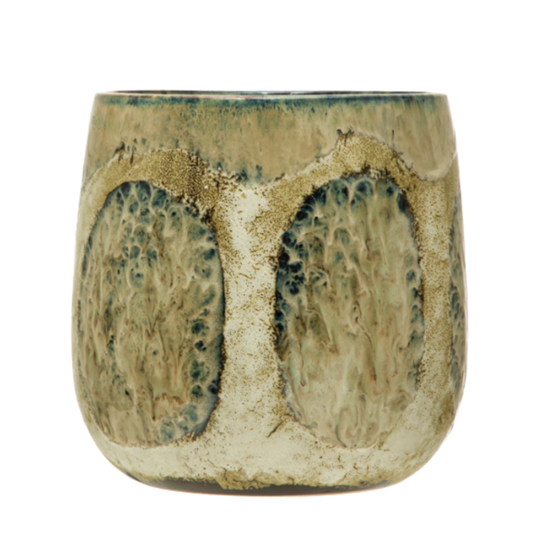 Bring a touch of modern texture to your space with the Shoreline Planter. Crafted from stoneware and finished in a multi-tonal reactive glaze, this piece features organic, wave-like patterning in soft sand, seafoam, and deep mineral hues. The textured oval insets create depth and movement, giving it that perfectly weathered, shoreline-inspired feel.